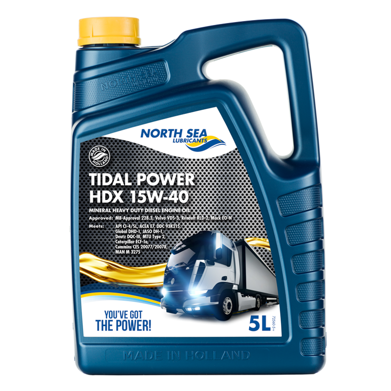 TIDAL POWER HDX 15W-40 - це надвисокоефективне, універсальне моторне масло. Воно призначене для високонавантажених дизельних двигунів легких та важких комерційних автомобілів, що експлуатуються цілий рік у важких умовах. Його можна використовувати для двигунів класу Євро-3, Євро-4 та Євро-5, оснащених системами додаткового очищення відпрацьованих газів EGR (система рециркуляції вихлопних газів) та/або SCR (система зниження токсичності вихлопу). Ця олива не підходить для транспортних засобів, оснащених сажовими фільтрами (DPF).
