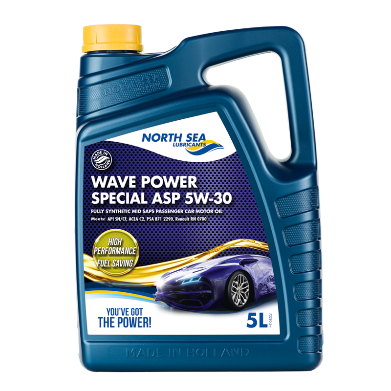 WAVE POWER SPECIAL ASP 5W-30 – це 100% синтетичне, високоефективне, економне паливо моторне масло із середнім вмістом сульфатної зольності, фосфору та сірки (MID SAPS) для бензинових та дизельних двигунів у легкових автомобілях та легких вантажівках останнього покоління, що вимагають використання оливи з допуском PSA B71 2290. Воно також підходить для всіх двигунів, що вимагають використання оливи класу ACEA A5/B5, C2.
